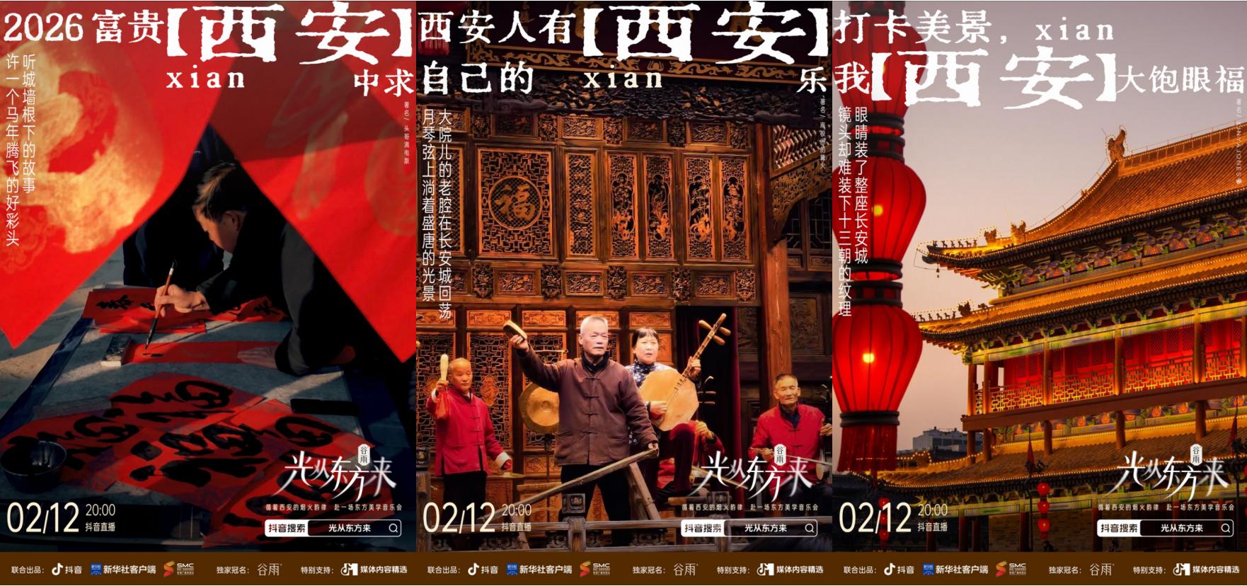 这场由谷雨独家冠名,抖音携手新华社客户端、陕西广播电视台发起的视听盛会,将于2026年2月12日晚20点在@陕西都市快报 抖音官方账号直播,并由@陕西卫视 抖音官方账号和@光从东方来 节目抖音号共创直播。