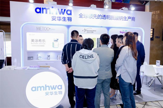 山东安华生物医药科技股份有限公司携旗下品牌「纽拉美斯」「殊羽」「美涂希乐」受邀出席本次大会,吸引了众多客户前来交流并体验,展位前人流络绎不绝,安华生物工作人员一专业的知识和饱满的状态为大家进行详细解答。