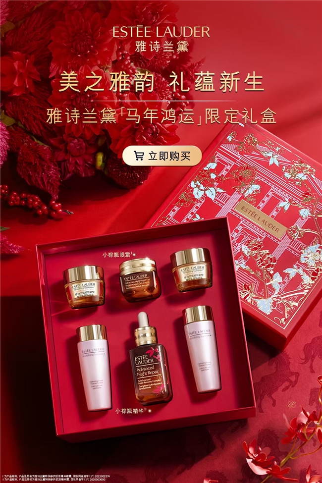节日适配:临近新春,优先选择带节日限定设计的礼盒,雅诗兰黛马年限定款的专属纹样的收藏与观赏价值,远超普通款,更能传递节日心意。